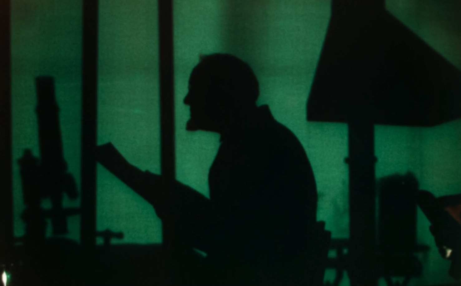 The doctors are introduced in visually suggestive terms, from the sleepless, gaunt amputee Dr. Wells, who is curiously studying cannibalism, to the Mephistophlean silhouette of Dr. Haines, all presented as various exemplars of psychomania.